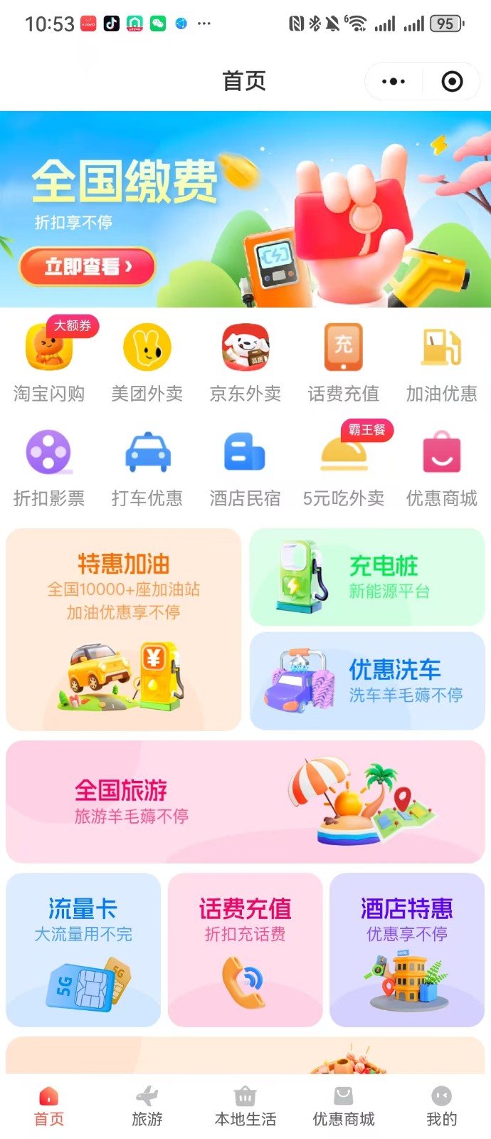 用户提供外卖、餐饮、免费旅游、加油优惠等日常消费的折扣